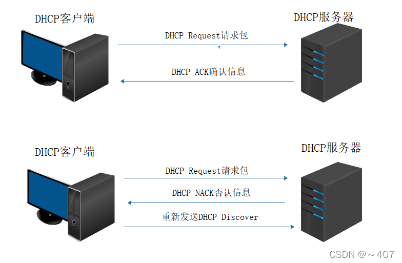 DHCP客户机每次重新登录网络时,不需要再发送DHCPDiscover信息,而是直接发送包含前一次所分配的IP地址的DHCP Request请求信息