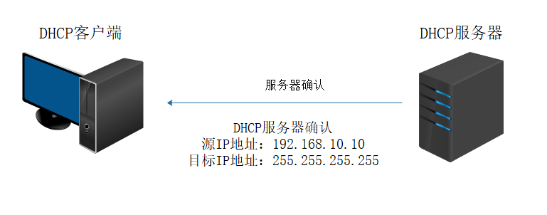 DHCP服务器接收到DHCP Request消息后,以DHCPACK消息的形式向客户机广播成功确认,该消息包含有IP地址的有效租约和其他可配置的信息,当客户机收到DHCPACK消息时,配置IP地址,完成TCP/IP的初始化