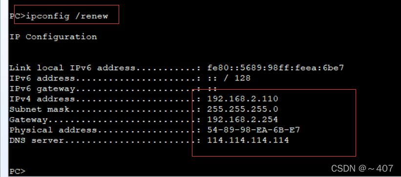 3.动态分配是当DHCP客户机第一次从DHCP服务器获取地址后,并非永久地使用该地址,而是在 每次使用完后,DHCP客户机就会释放这个IP地址,供其他客户机使用