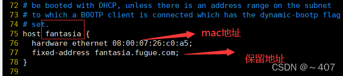 hardware ethernet 00:0c:29:3b:ff:76; ###客户端MAC地址