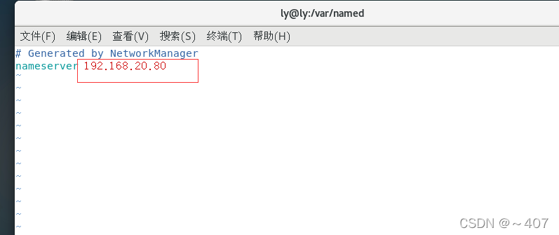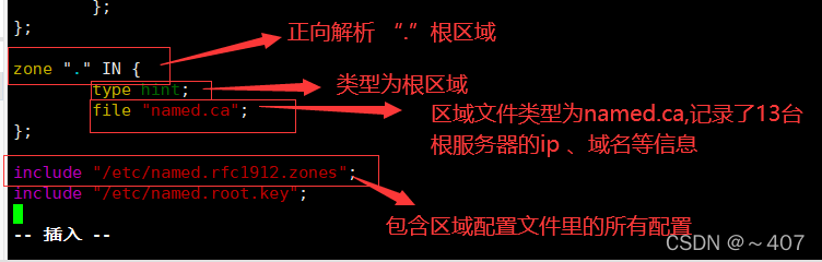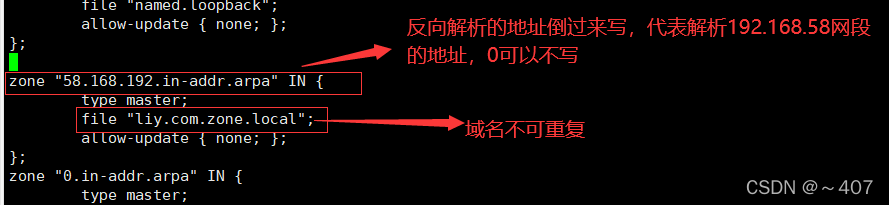 编辑区域配置文件 vim /etc/named.rfc1912.zones
