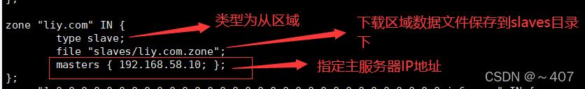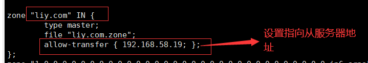 vim /etc/named.rfc1912.zones 修改主服务器的区域配置文件