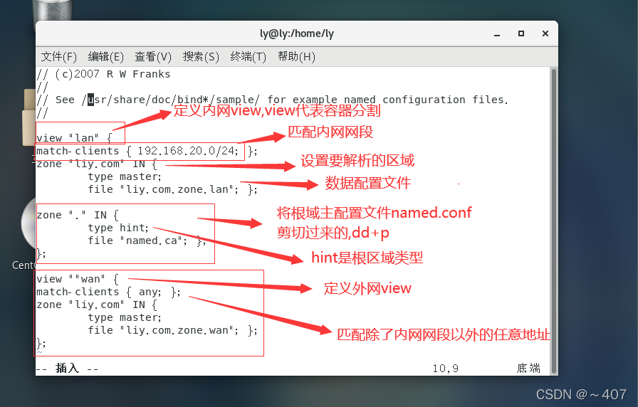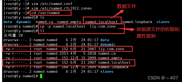 修改区域配置文件 vim /etc/named. rfc1912.zones