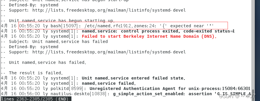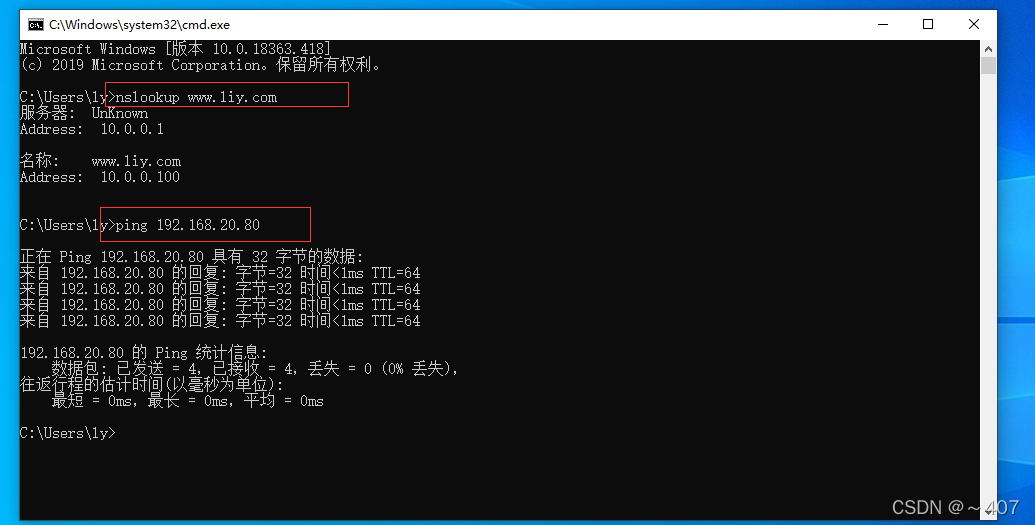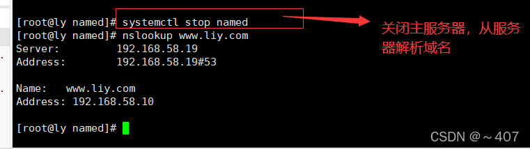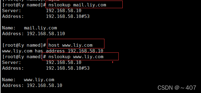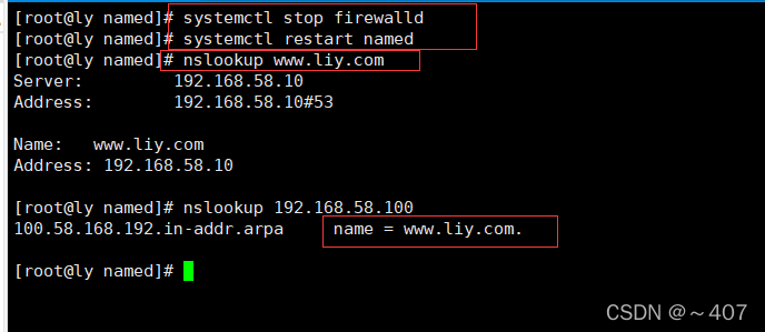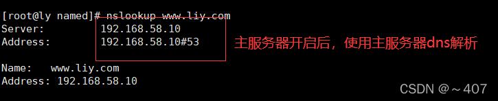 解决问题后重启服务成功,并验证结果 内网 解析www.liy.com 为192.168.20.85