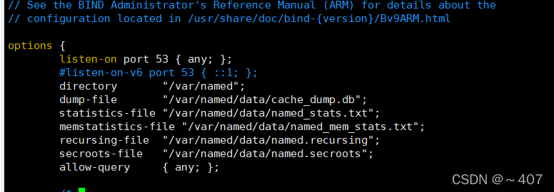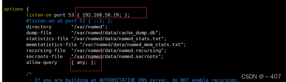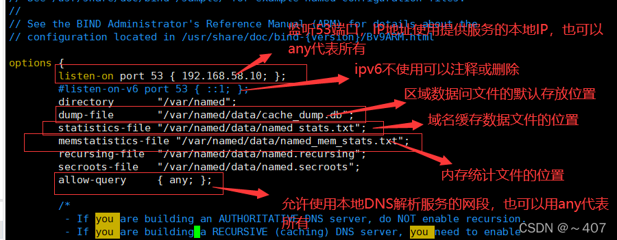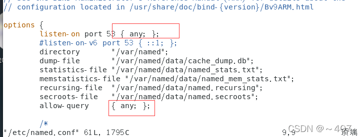 vim /etc/named.conf 修改主配置文件 (其中具体含义查看上文)