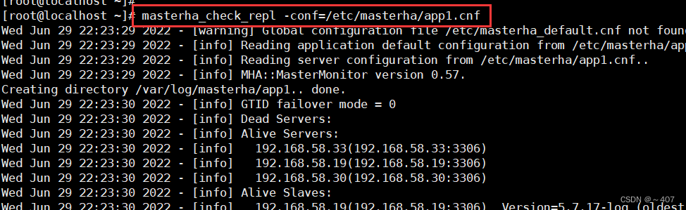 masterha_check_repl -conf=/etc/masterha/app1.cnf