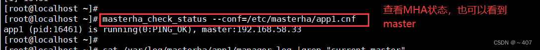 cat /var/log/masterha/app1/manager.log | grep "current master"