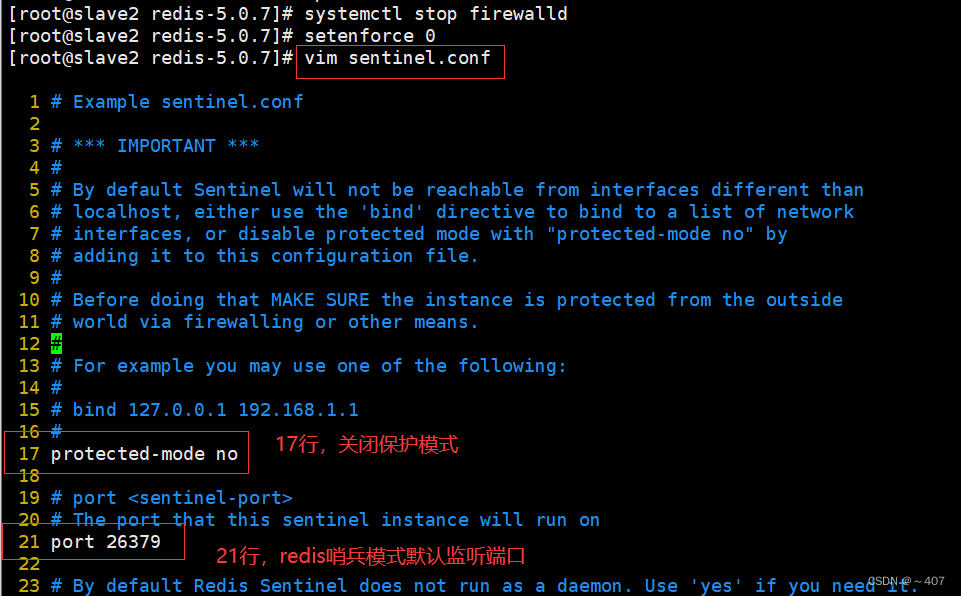 port 26379 #21行,Redis哨兵默认的监听端口