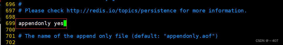 699 appendonly yes #开启AOF持久化