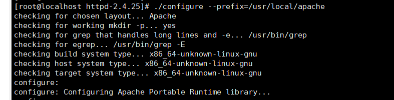 ./configure --prefix=/usr/local/apache #使用源码目录中的configure脚本,安装路劲设置为 /usr/local/apache