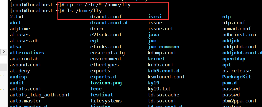 进行故障测试:将/etc下东西复制到/home/lly 上,查看