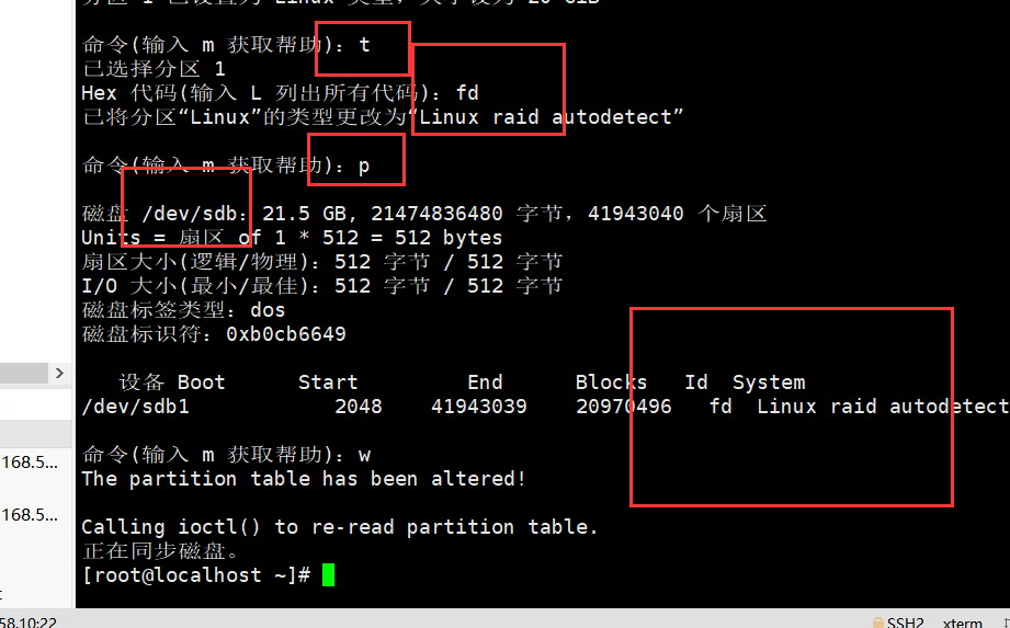 将4块硬盘分区,并将4块硬盘分区类型修改成fd (其余三块相同操作)